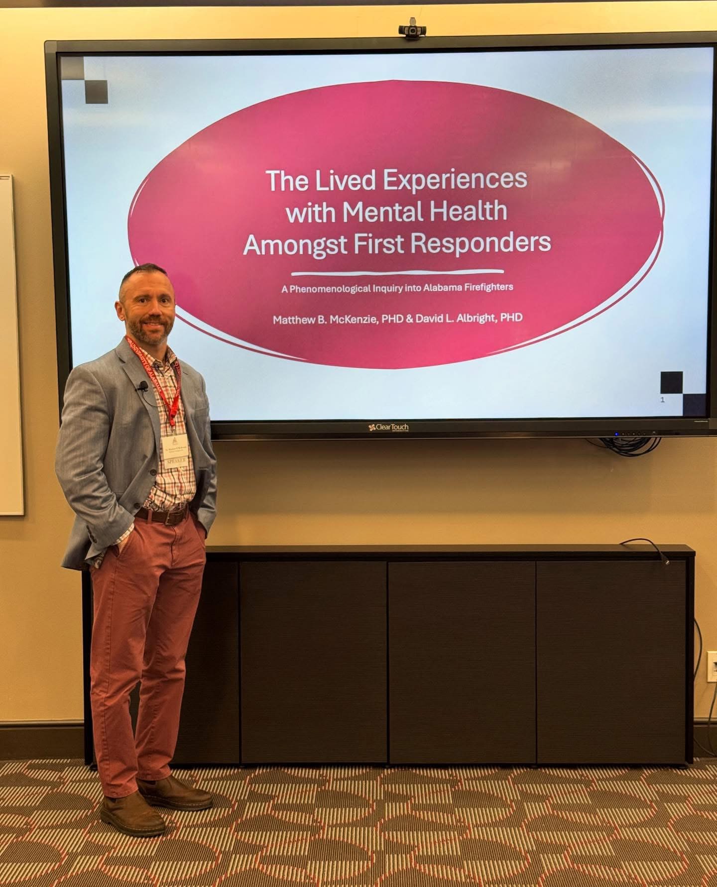 The presentation "The Lived Experiences with Mental Health Amongst First Responders: A Phenomenological Inquiry into Alabama Firefighters" represented the largest qualitative study to date in Alabama. McKenzie worked on this research with his colleague Dr. David Albright.