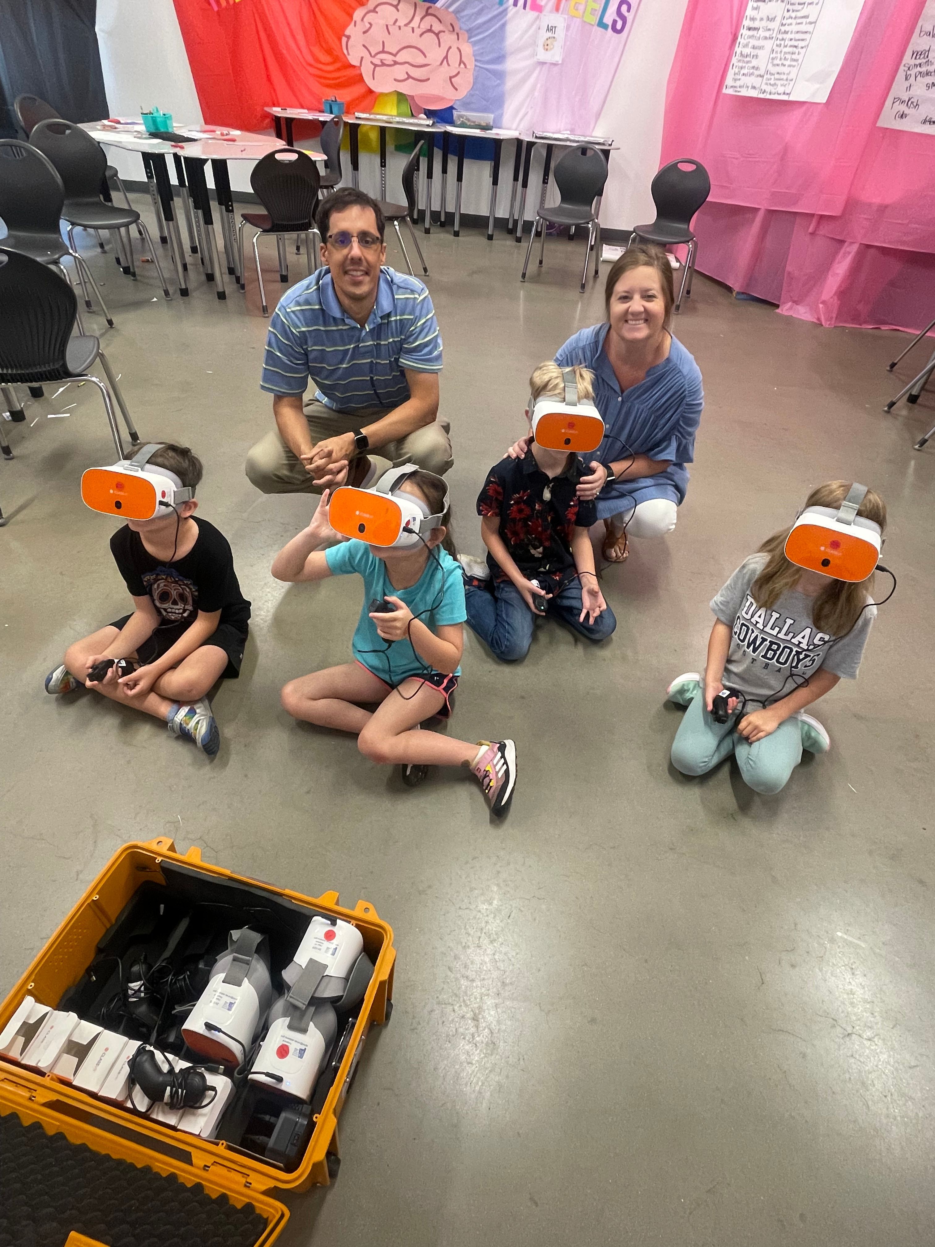 Laboratory for Innovative Technology in Education (LITE) Director Dr. James Hardin brought virtual reality headsets one day, letting students in the Egypt and weather groups take turns seeing what it would look like as a storm is approaching or to walk around in ancient Egypt.