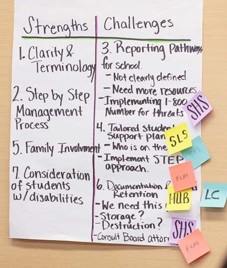 Creating BTA teams allows each school to take a proactive approach, determining and addressing potential threats as opposed to potentially creating conflict through zero-tolerance policies. These teams are comprised of a diverse group of staff members, including administrators, counselors and social workers, teachers as well as school resource officers (SROs).