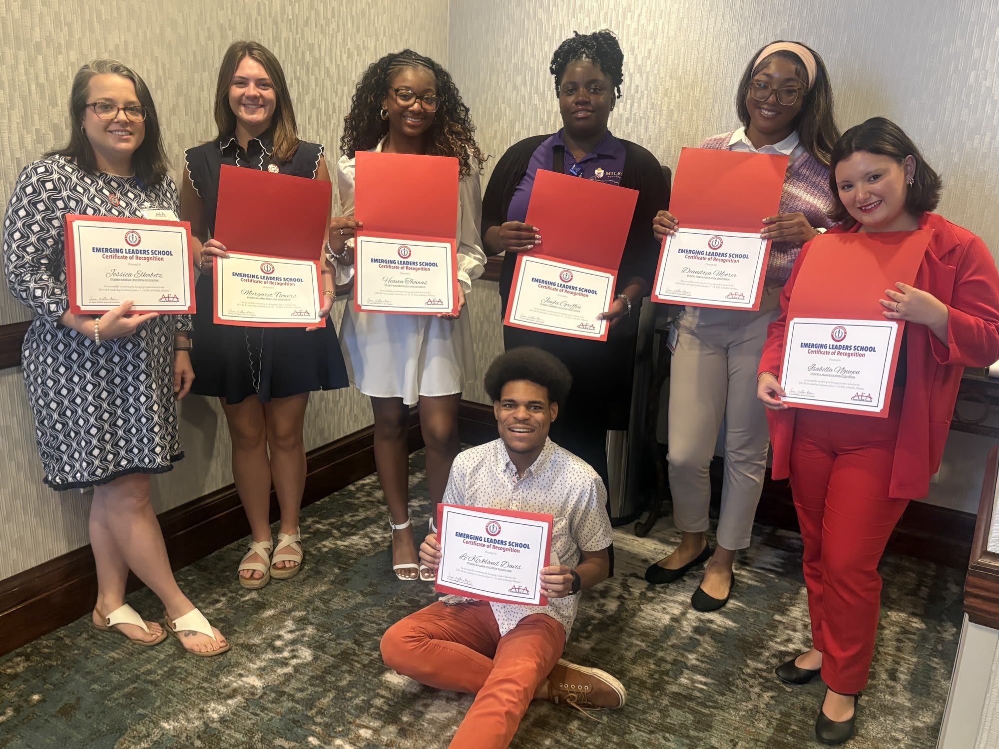 Students Heaven Thomas, Margaret Flowers and Isabella Nguyen attended the 34th Annual Emerging Leaders School, hosted in Montgomery by the Alabama Education Association (AEA), from June 11-14. The three were selected to attend through their positions on the Student Alabama Education Association (SAEA) State Board. Thomas and Flowers are also College of Education Ambassadors.